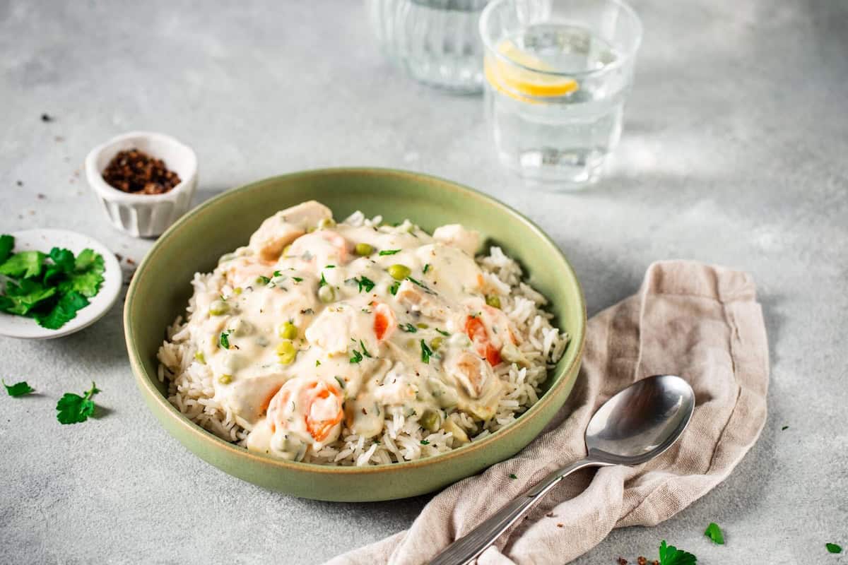 Hühnerfrikassee ist ein absoluter Klassiker der Familienküche. Das weiße Ragout stammt aus der französischen Küche. Dabei ist das klein geschnitt ...